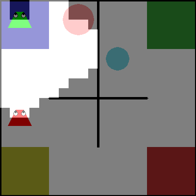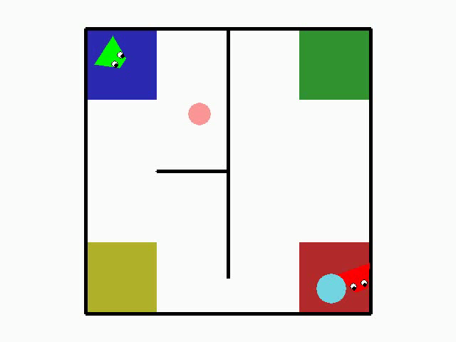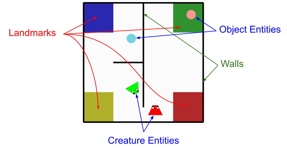 - Landmarks: colored squares that creatures may try to get to or move objects to.